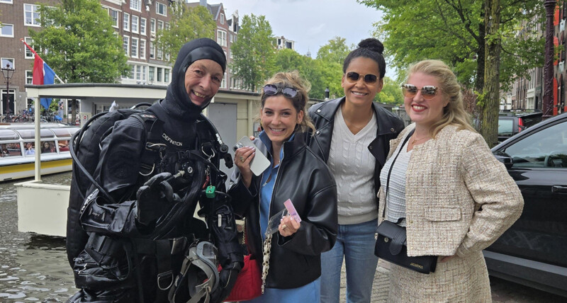 Natuurlijk proberen ze eerst zelf: met een magneet, met hengels, met creatieve ideeën. Maar de bewoners van de woonboten grinniken vriendelijk: “Stop er toch mee, wij weten wel een duikteam!” En zo komt Recovery Divers in beeld.
