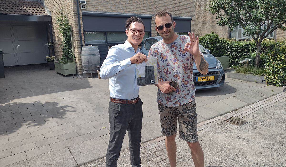 De exacte plek weten Harrison en Lily niet precies, maar dat maakt het voor ons niet minder leuk. Na nog geen vijf minuten komt Jochem alweer boven… met twee telefoons in zijn hand.