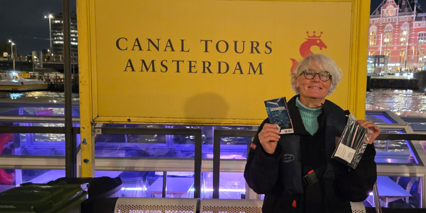 Een paar uur later staan we aan de kade van de Oudezijds Voorburgwal. Een gracht met bijna vijf eeuwen geschiedenis, ooit aangelegd voor handel en scheepvaart, nu het decor voor vrolijke toeristen, rondvaartboten en… vallende telefoons.