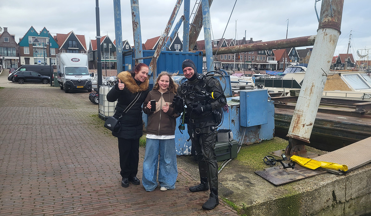 Isabelle, een aardige Roemeense jongedame woont al 6 jaar in Nederland. Eerst in Haarlem en sinds kort in Amsterdam. Het geluk lacht haar vandaag niet toe, alhoewel… Gelukkig hebben ze het nummer van Recovery Divers gevonden. Ze hebben de telefoon verloren aan de Marnixkade, ons niet onbekend, hier lagen we al eerder in het water, dat verhaal lees je hier. Toen voor een groter object, een helmstok!