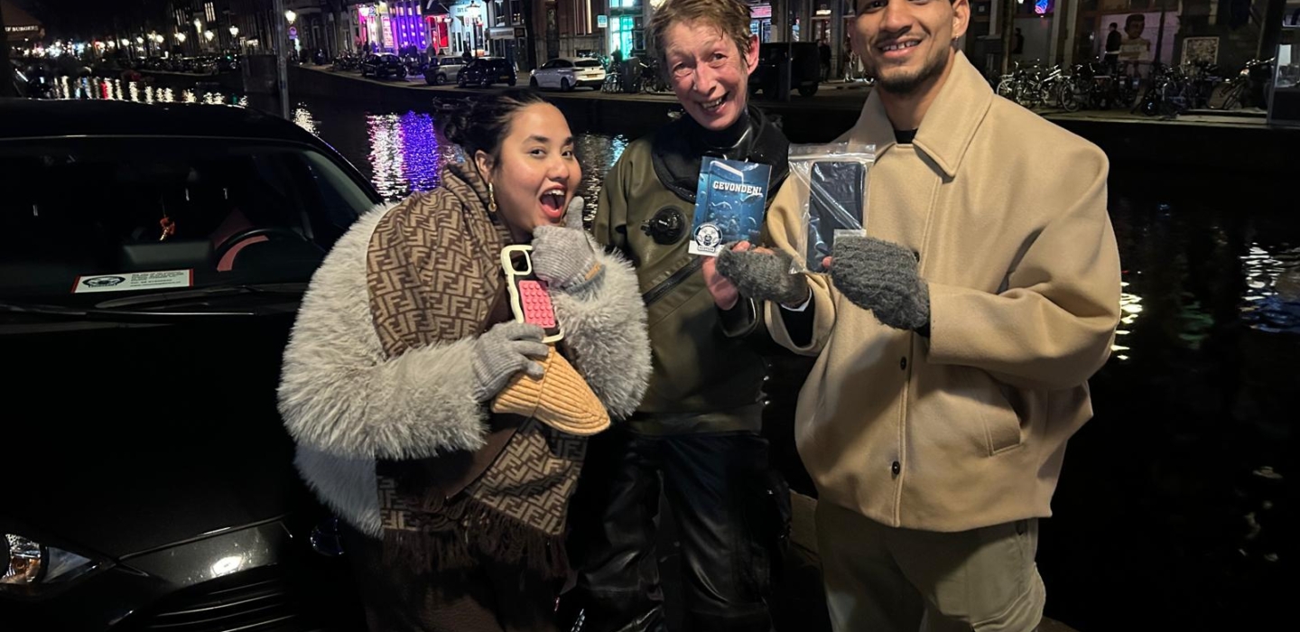Duiken naar telefoon aan de Oudezijds Voorburgwal