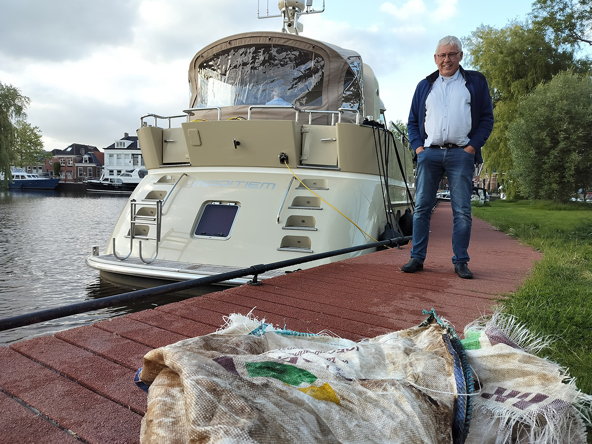 We zijn net uit het water geklommen als Jaap belt. Hij heeft een “Big Bag” in z’n schroef. En nee, dat is geen nieuwe bootterm.