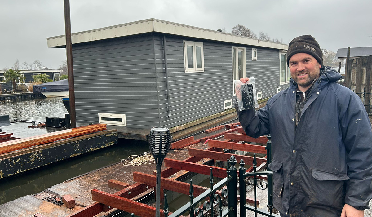 Precies om 15.00 arriveren we in Breukelen. We bellen naar het telefoonnummer waarop we Corné kunnen bereiken. Gelijk wordt er iemand naar de slagboom gestuurd om te helpen sjouwen.