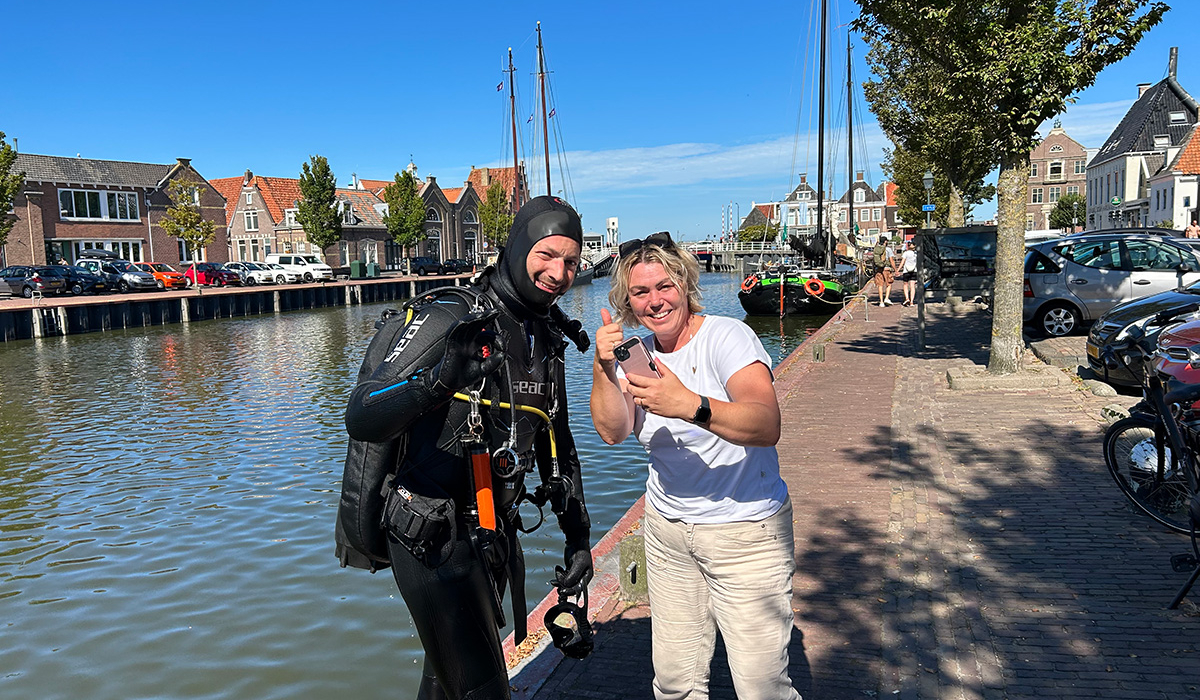 Duiken naar iPhone in haven van Harlingen