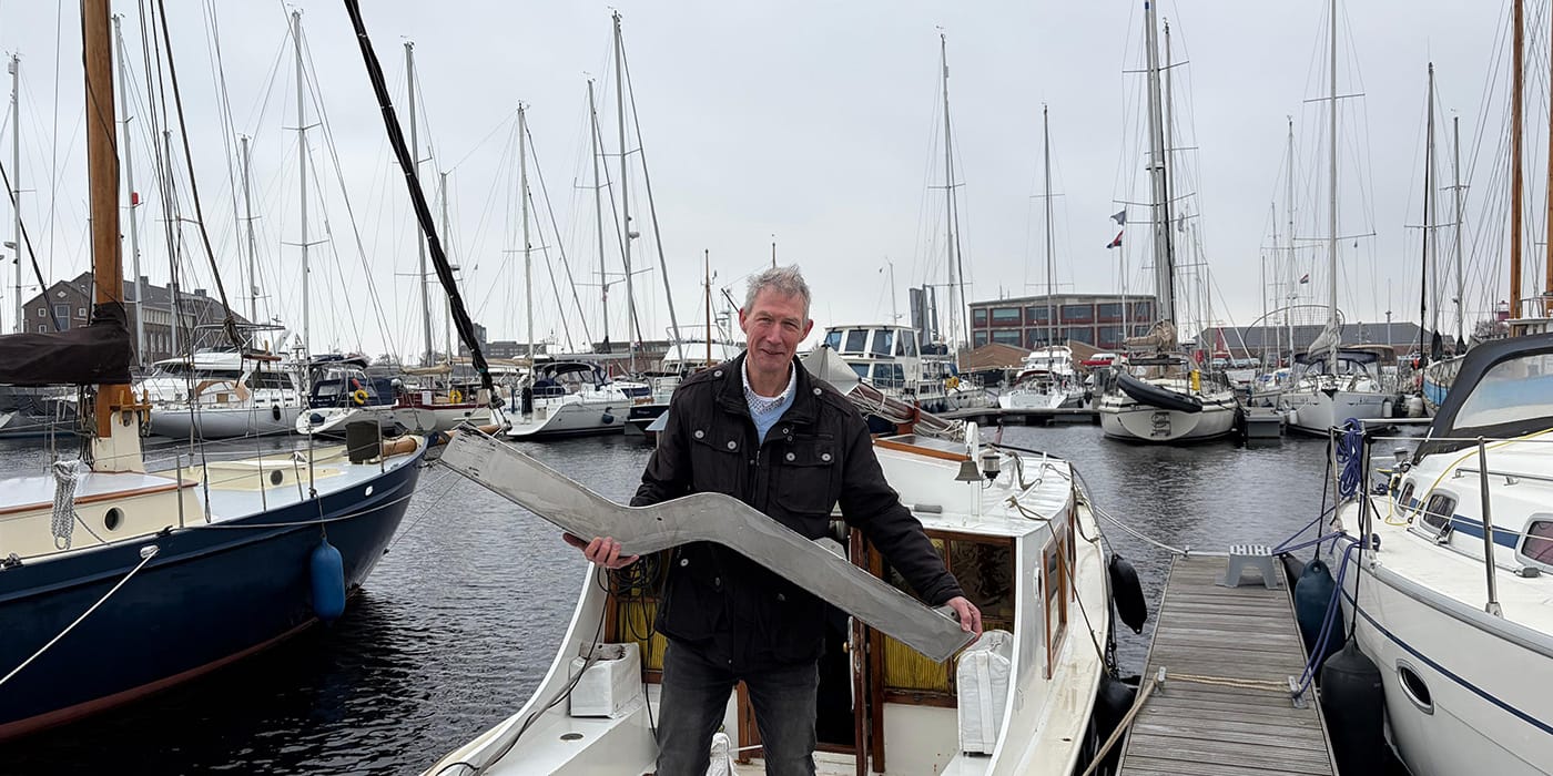 In Den Helder bij jachthaven Willemsoord halen we met een creatieve oplossing een verloren helmstokonderdeel snel en veilig uit het water.