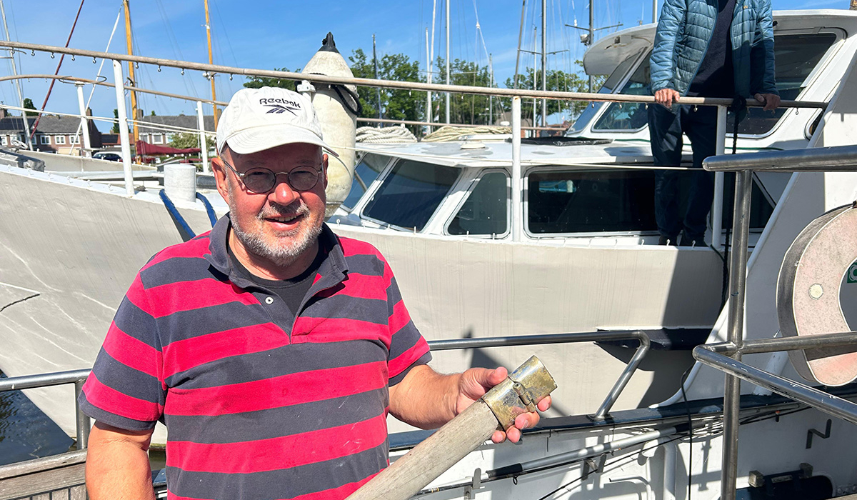 Een paar minuten later is Marc er ook. Samen met de schipper die het raam verloren is wijst hij de exacte locatie aan. Terwijl Jerry de trap in het water zet en de boei erin gooit bouw ik mijn setje op.
