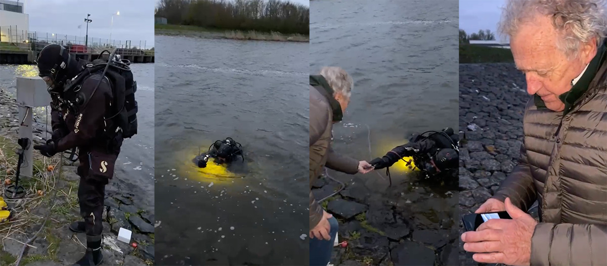 We doken in de Oudezijds Voorburgwal en vonden binnen vijf minuten Lily’s iPhone én ID terug, waardoor ze alsnog haar vlucht naar Engeland kon halen.
