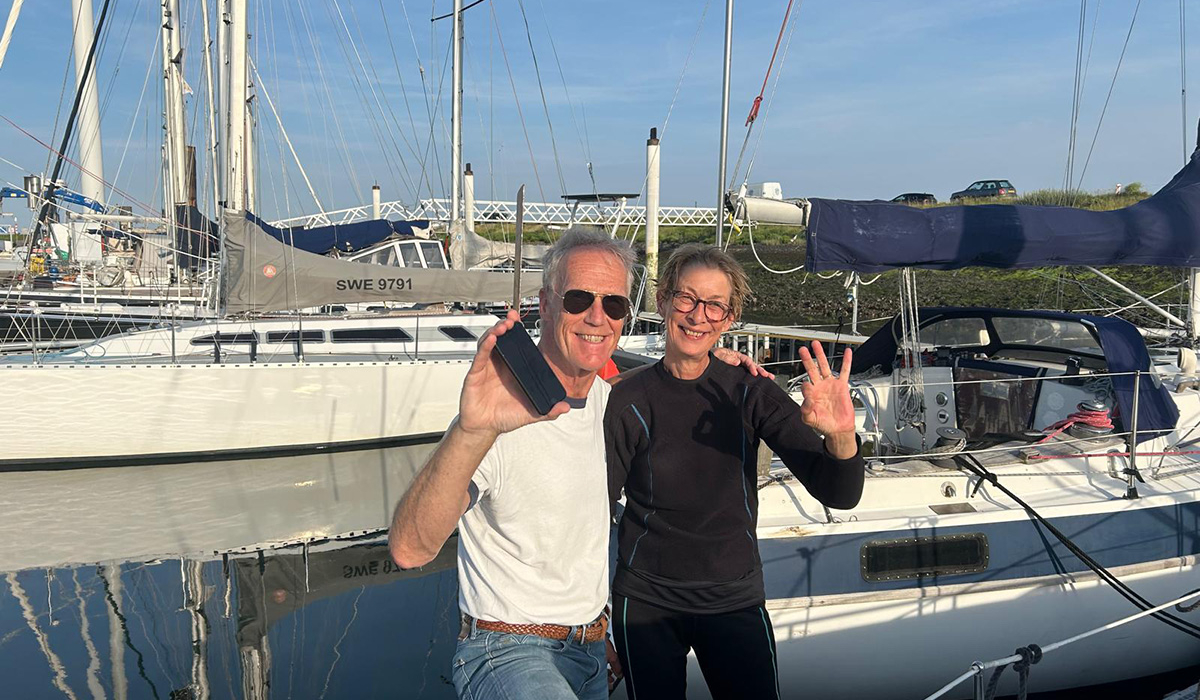 Op de kade zijn ze blij, ik geef de telefoon aan Julius, kom er via de naastgelegen boot uit (die heeft een zwemplatform) en natuurlijk maken we nog even een foto en praten we na tijdens het omkleden.
