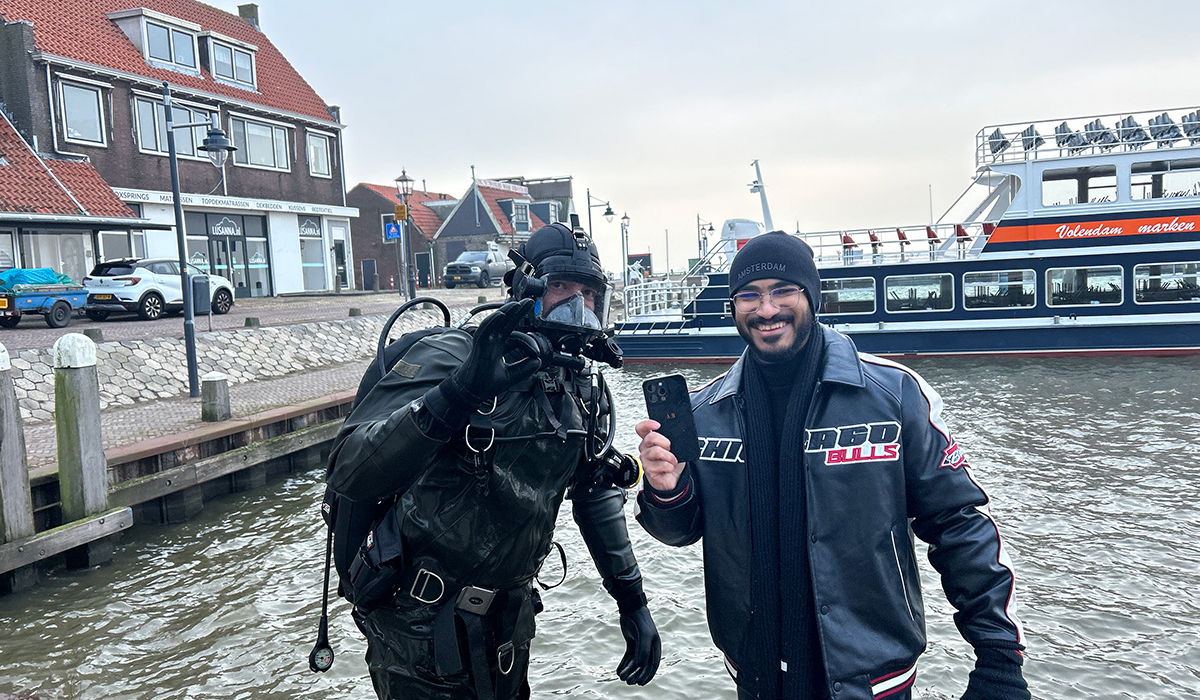 Duiken naar telefoon in Volendam