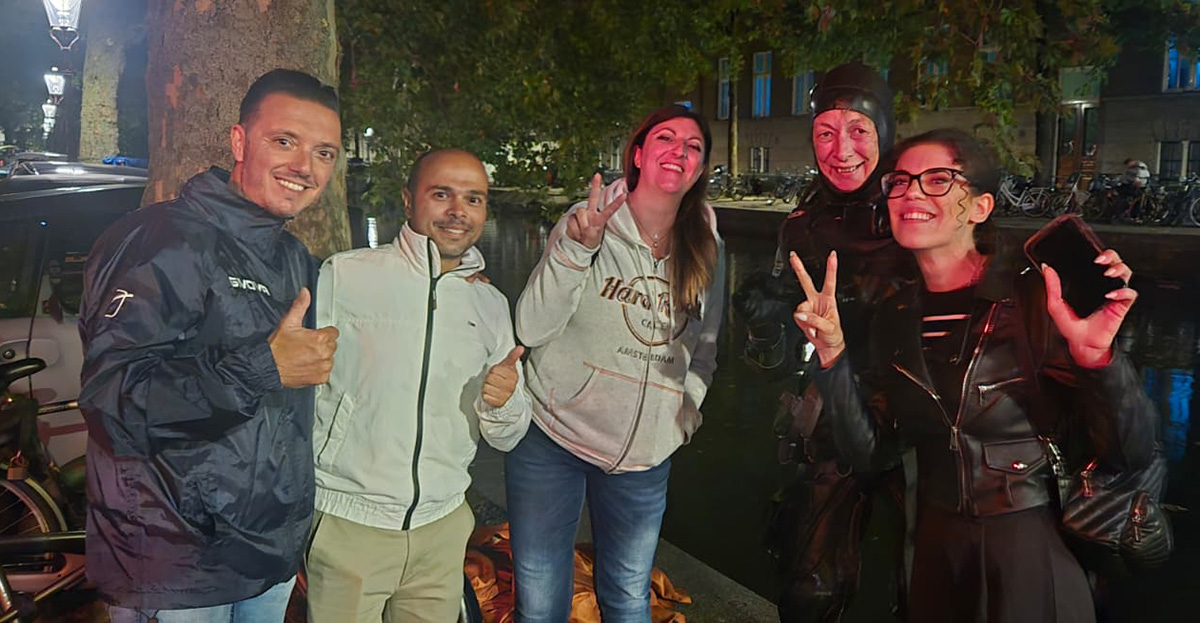 Grote paniek in Amsterdam: Gianluca verliest haar telefoon pal voor café De Krul aan de Lijnbaansgracht.