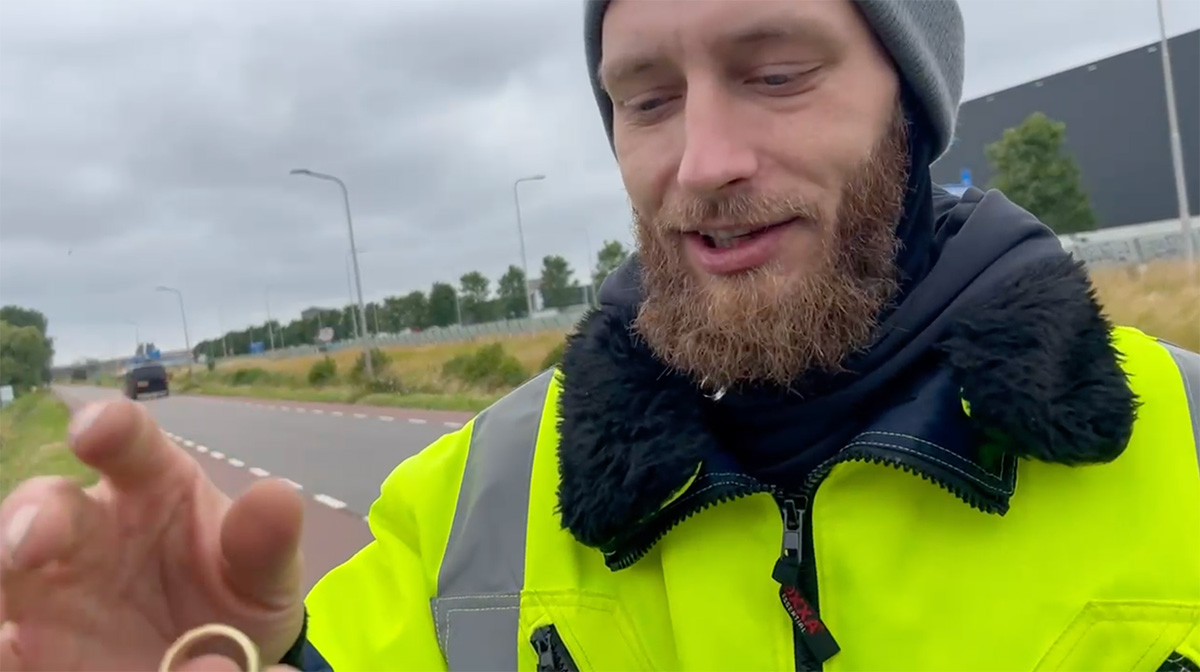 Lukasz zegt precies te weten waar de ring is gevallen, bij een trappetje aan de Oostkanaalhaven in Nijmegen.
