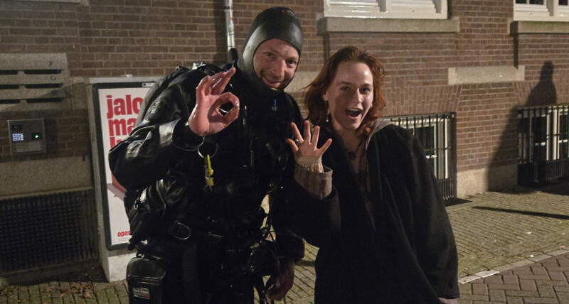 Eenmaal helemaal klaar voor de duik ging Marja samen met Daylano het water in. “Weet je het zeker?” vroeg ze nog. “Nou dat weet ik,” antwoordde Daylano vastberaden.