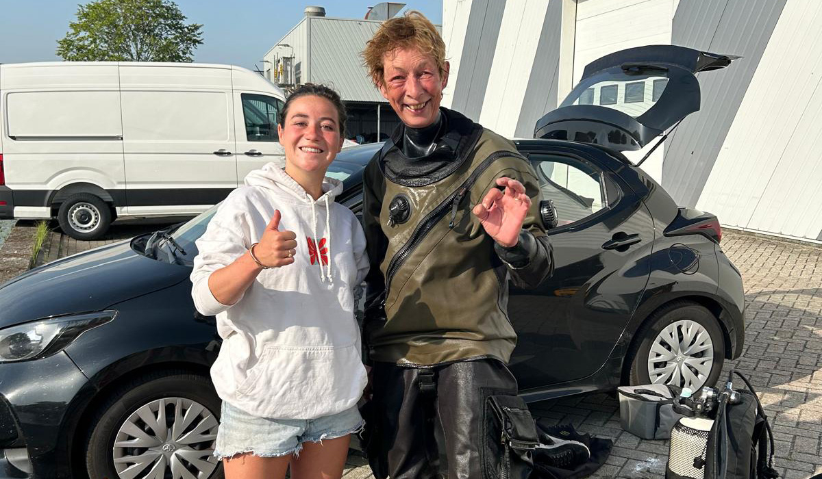 De locatie wordt aangewezen en Marja maakt zich klaar voor de duik, setje opbouwen en droogpak aan. Het is druk langs de kade, vrienden komen kijken en er zijn tientallen mensen aan het zwemmen in het Utrechtse water.
