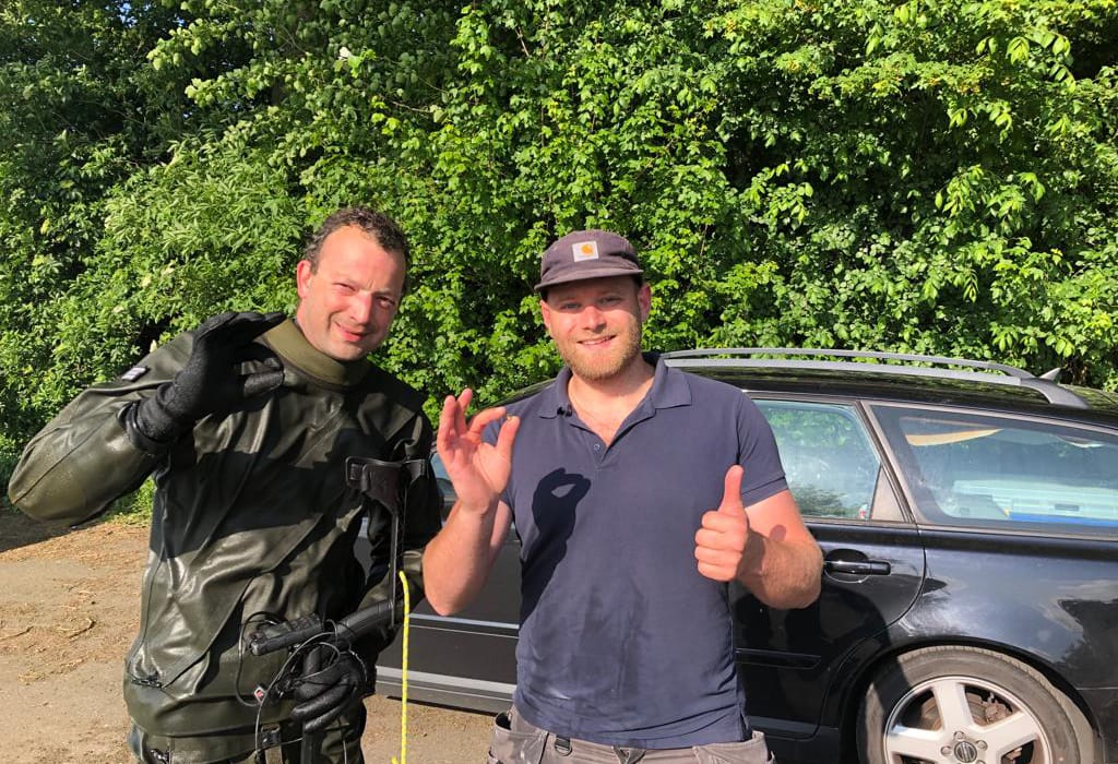 Met behulp van foto’s van de plek bepaalden we een duidelijk zoekgebied. Dat scheelt, want anders wordt een sloot al snel een naald-in-een-hooiberg-verhaal.