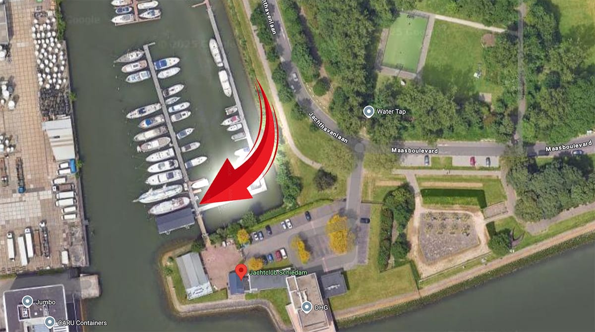 Vanuit Tholen rijden we door naar de jachthaven aan de Maasboulevard in Schiedam.
