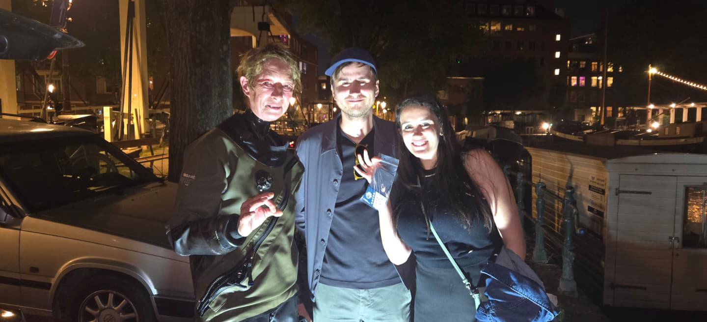 We spreken af bij het woonadres van Dennis. We rijden achter elkaar aan naar de haven. Het is een warme dag en lopen in het zonnetje naar de locatie waar de telefoon in het water is gevallen. Zo weten we precies welk materiaal we nodig hebben voor de duik (afdaallijnen, trap, etc)