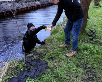 Telefoon binnen 30 seconden gevonden in sloot