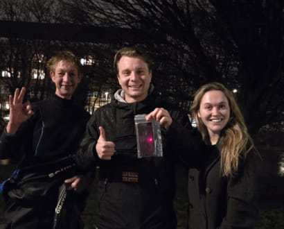 In Amsterdam redden onze duikers de telefoon van Hyunjung...