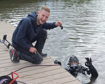 Sleutelbos overboord, Recovery Divers schiet te hulp.