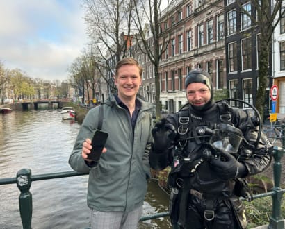 Duiken naar telefoon in Amsterdam die er al even ligt…