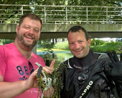 Duiken in Wijchen naar telefoon in de haven
