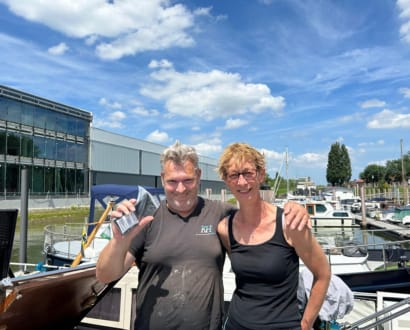 Als ik uit het water kom in Loosdrecht hebben...