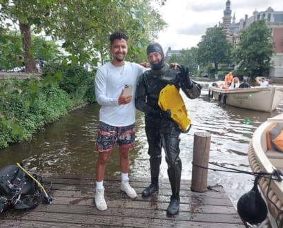 Duiken naar iPhone op Groenburgwal in Amsterdam