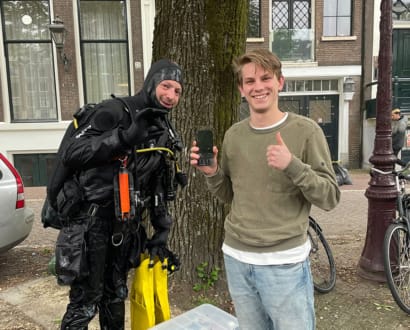 Duiken naar iPhone in Amsterdam op Oudezijds Voorburgwal