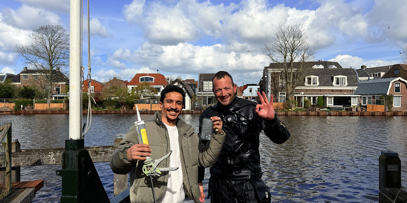 Maar bij één verloren voorwerp bleef het niet. Want een collega van Slem had ook een kitspuit in het water laten vallen. En alsof dat nog niet genoeg was, bleek er ook nog een losse kittube in de Amstel verdwenen. Drie items, één duik, één tevreden ploeg schilders. Drie keer scheepsrecht, zoals we dat graag noemen. Jochem ging het water in, navigeerde langs de oevers van deze historische rivier die zijn naam gaf aan de hoofdstad van Nederland, en vond de telefoon, de kitspuit én de kittube. De Amstel moest zijn buit teruggeven, en dat deed ze.