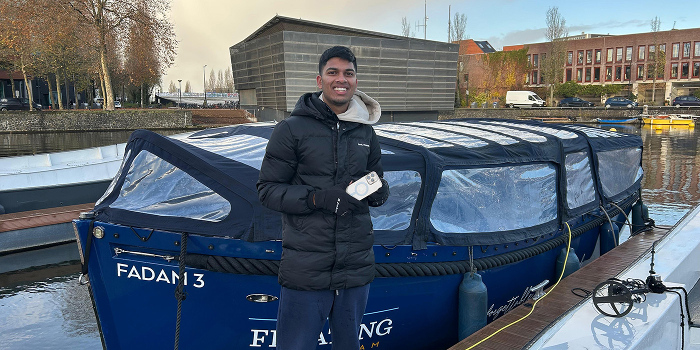 In donker havenwater vonden we Aditya’s iPhone 16 Pro Max terug, die na een flinke plons vanaf de steiger gewoon weer bleek te werken.