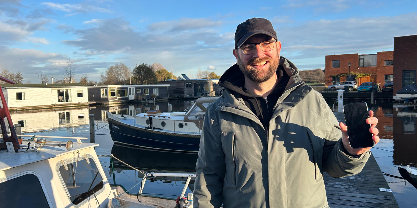 In de haven verloor Arnold zijn telefoon in het water, maar dankzij een duidelijke locatie en een snelle duik lag hij binnen enkele minuten weer in zijn hand.