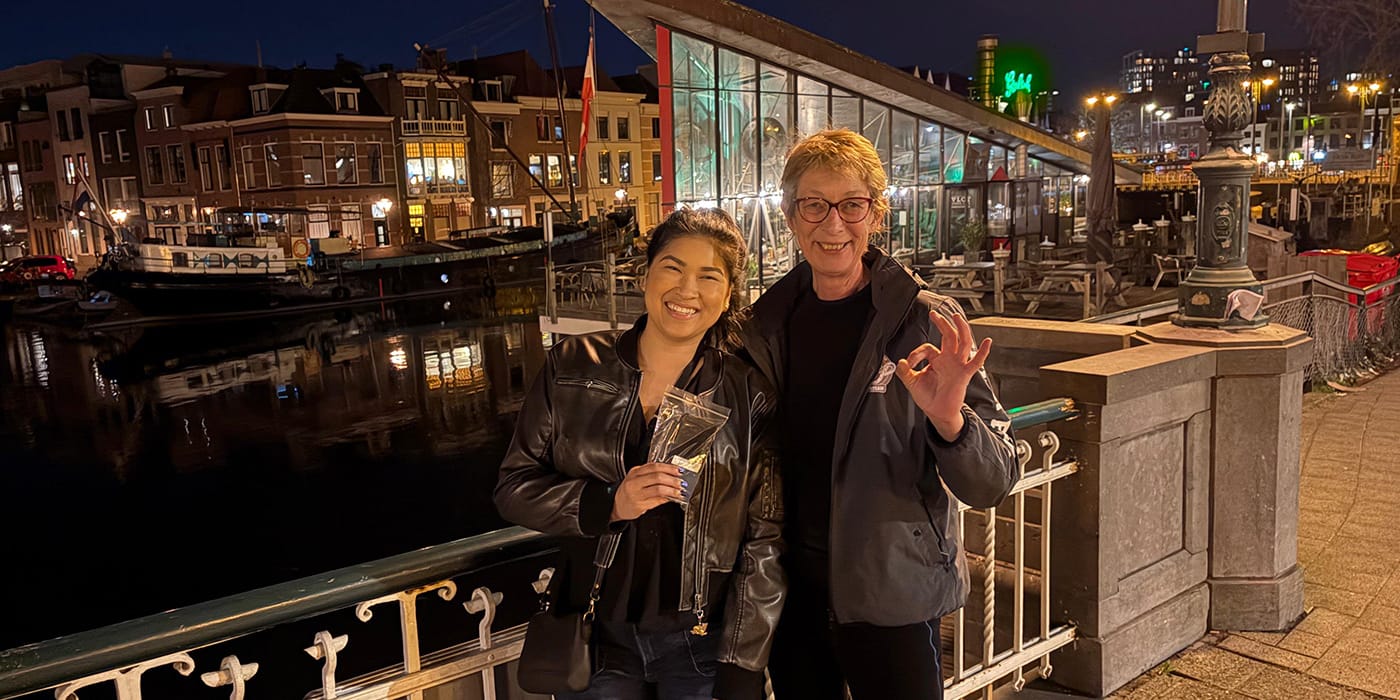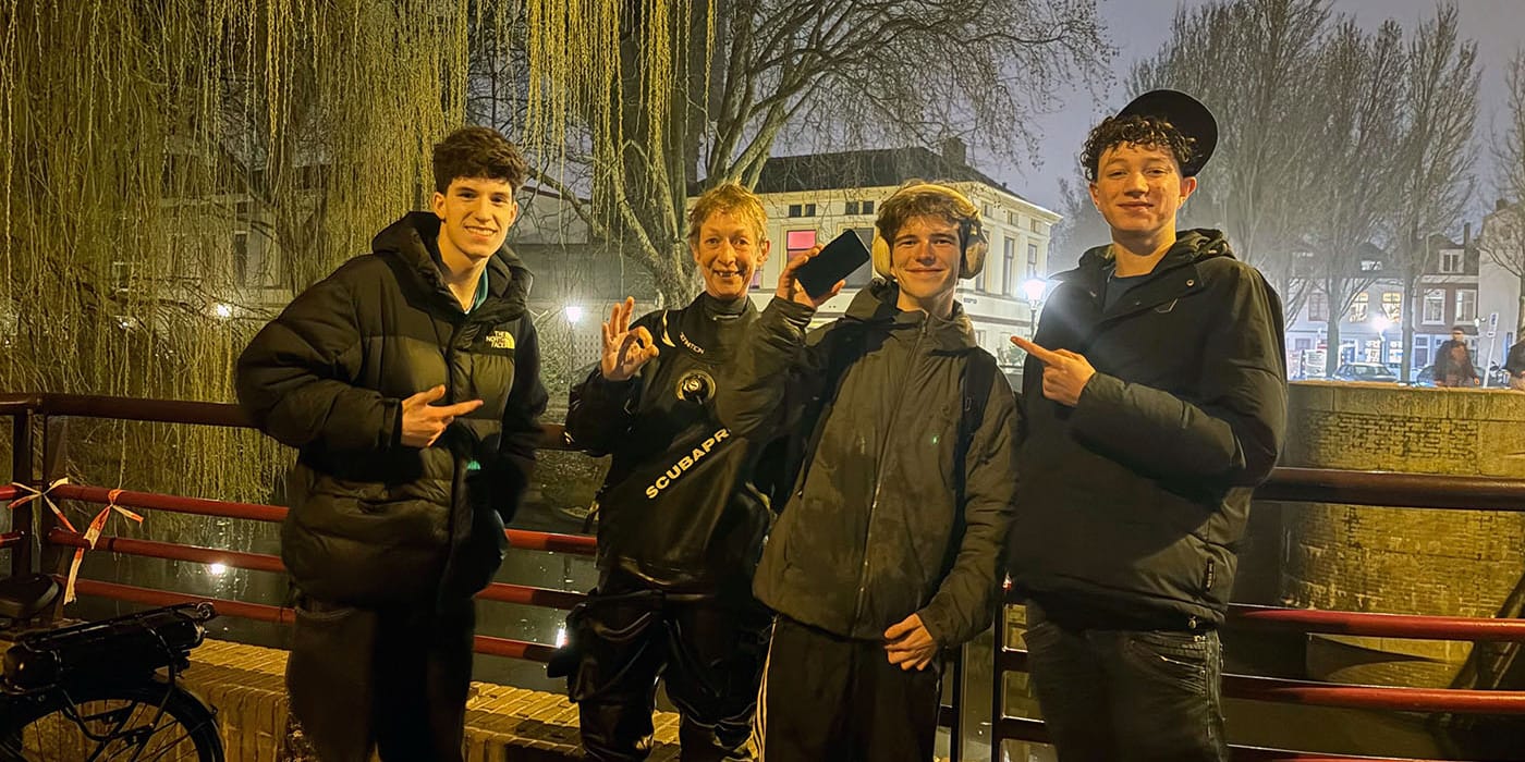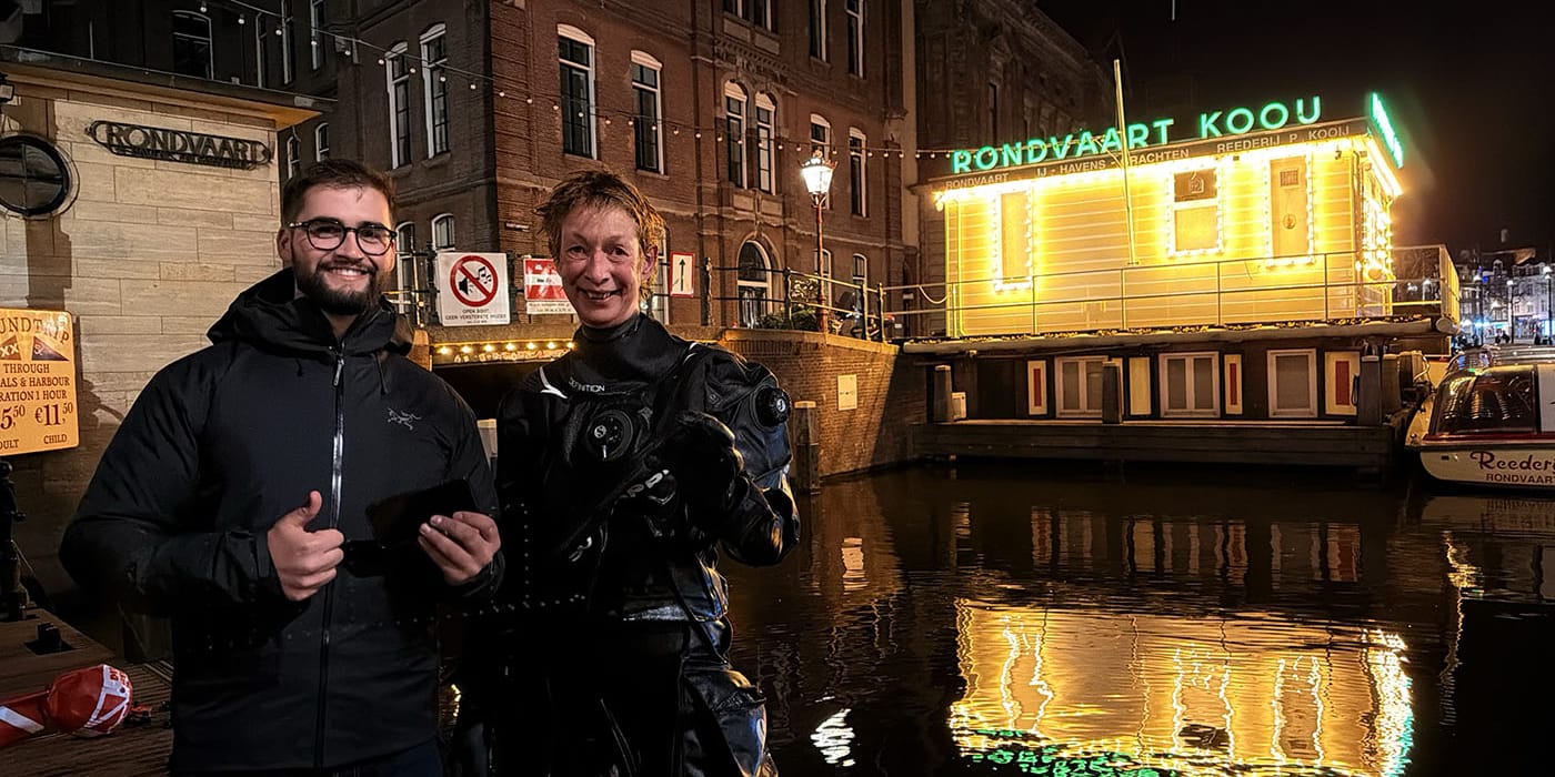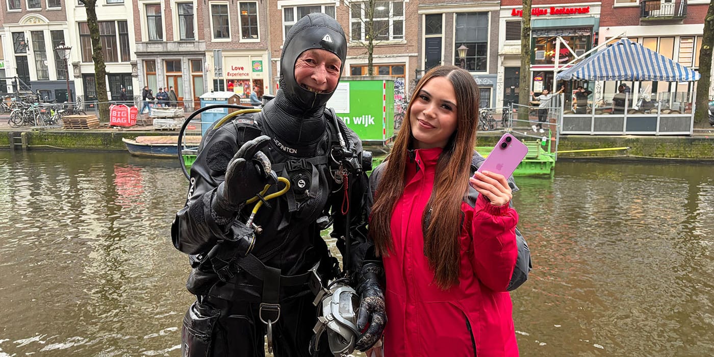 Aan de Oudezijds Voorburgwal in Amsterdam doken we de telefoon van Mara op die tijdens haar werk bij de rondvaart in de gracht was gevallen.