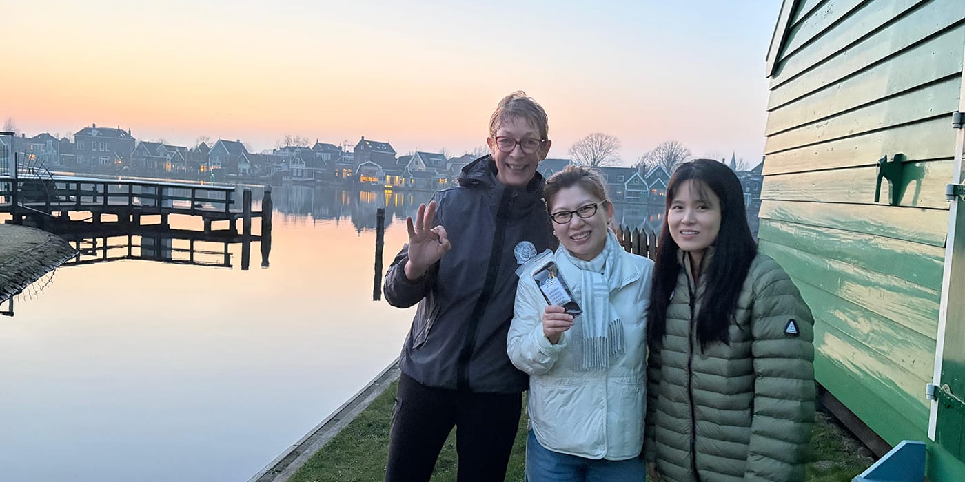 Op de Zaanse Schans werd een telefoon van twee studenten uit Singapore en Taiwan snel teruggevonden nadat hij tussen de steigerplanken in het water viel.