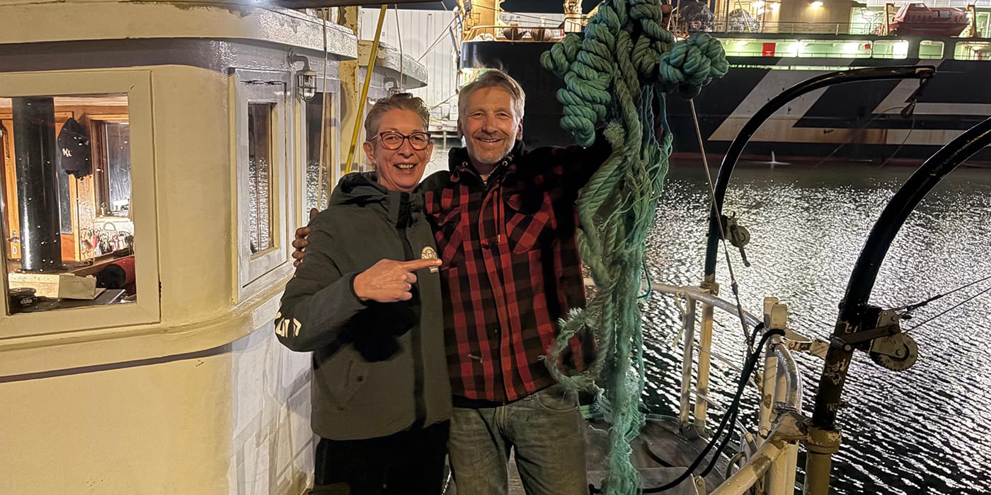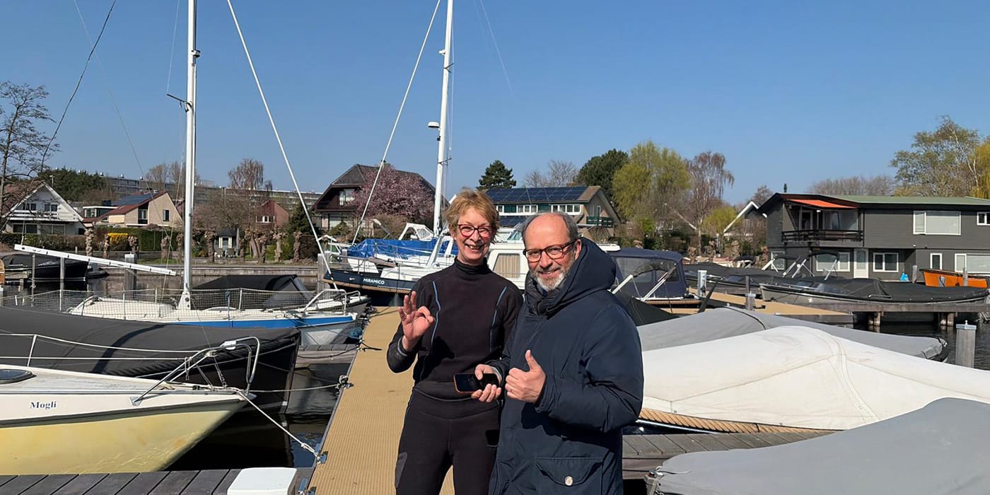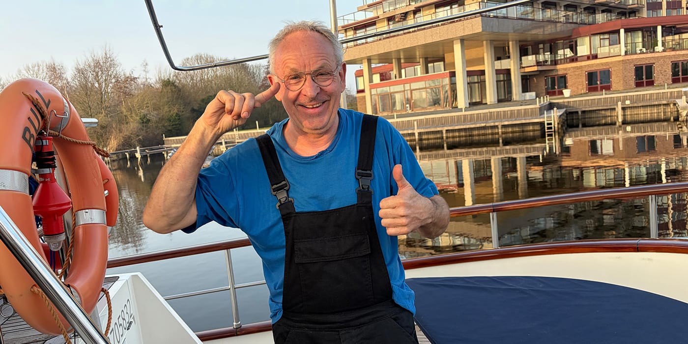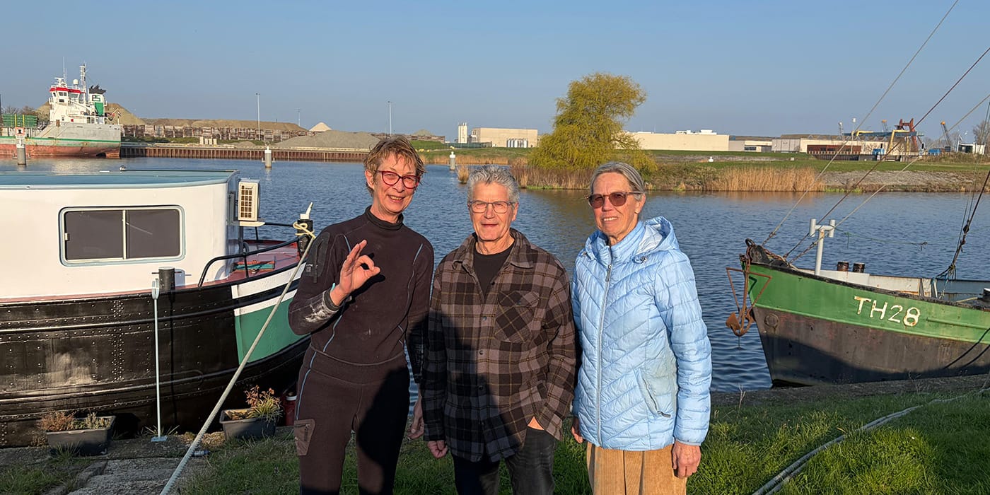 In IJmuiden verwijderden we een dik touw uit de scheepsschroef van Wout zodat hij de volgende ochtend weer veilig naar Amsterdam kon varen.