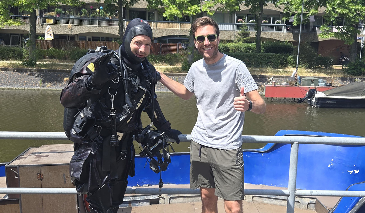 Na het opbouwen is het pak snel aangetrokken en het water in. Rond het middaguur is het aardig warm – bijna alsof de natuur ons een handje helpt.