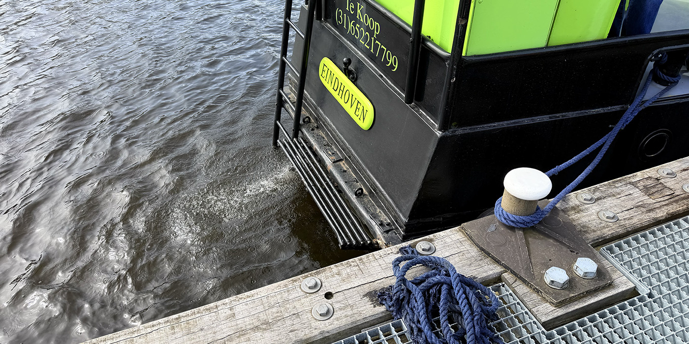 Na twintig minuten intensief onder de waterlijn kwam het verlossende signaal: de schroef was weer helemaal schoon. Meneer Blumink vertelt dat dit in zijn 30-jarige vaarcarriere nog nooit is overkomen, maar als het hem overkomt het touw in ieder geval wel strak zit. Terwijl we de resten van het touw aan boord tilden, ontstond er een mooi gesprek aan de kade. Het bleek dat meneer Blumink zelf ook een ervaren duiker is, maar dat hij wegens hartproblemen helaas de vinnen aan de wilgen heeft moeten hangen.