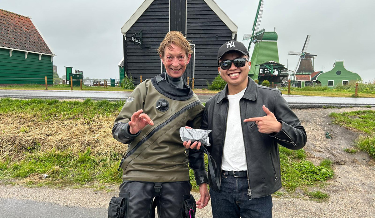 Richard blij, wij blij. En alsof dat nog niet genoeg was, maakte hij een compilatievideo van de duik én de vondst. Die zie je hieronder. Een lange duik, maar eentje die we niet snel vergeten, zeker niet met de molens van Kinderdijk op de achtergrond.