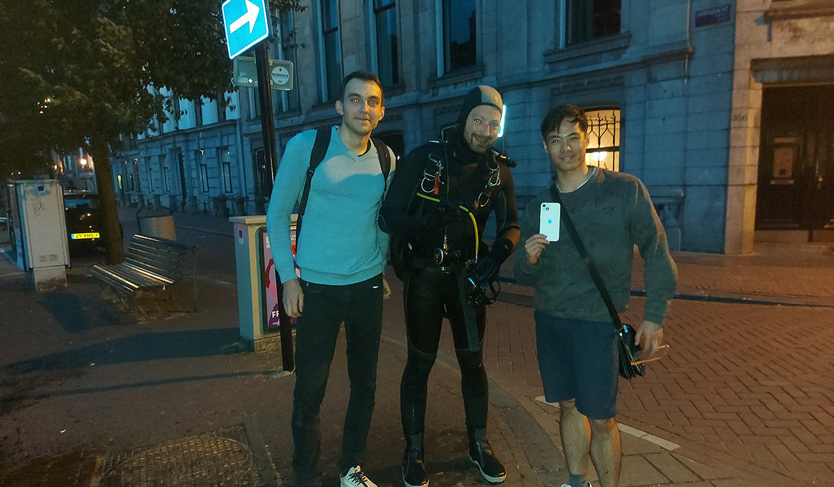 Marijn woont samen met Eva aan de kade en pakt nog even een frisse duik. Het water is al wat frisser, maar hé, het is herfst, je moet wat. Tijdens het omkleden glipt zijn telefoon tussen de steiger en de kademuur.