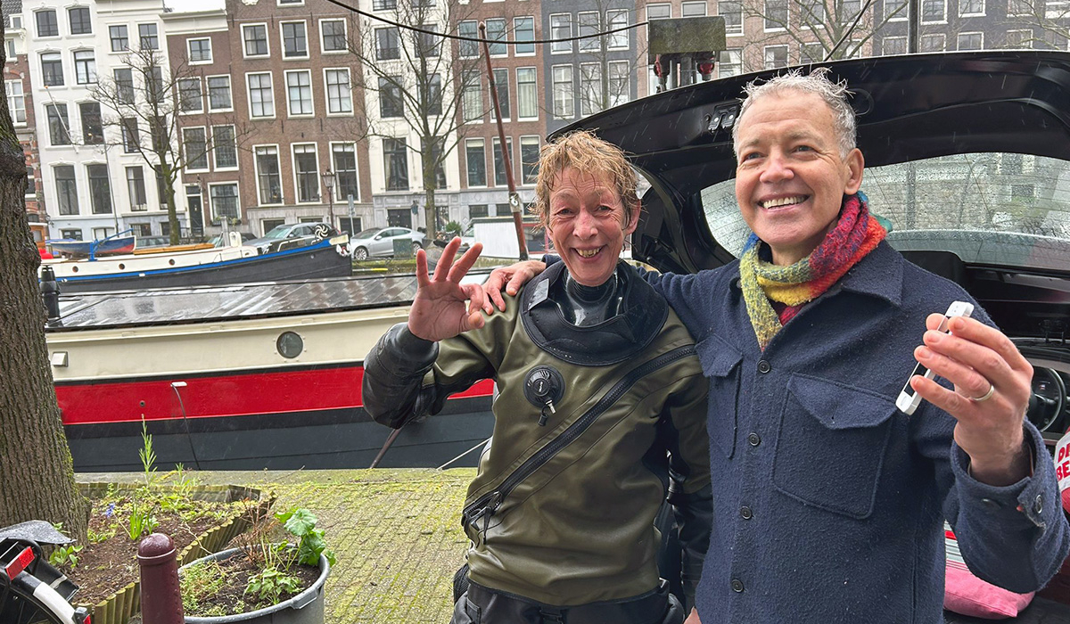 Ons team springt direct in de auto, Danny pakt de scooter – en allemaal razen we richting de locatie. Geen onbekende plek, we doken er pas ook al: iPhone 16 Pro Max uit de Amstel gevist. We zijn al goed onderweg en krijgen een berichtje: