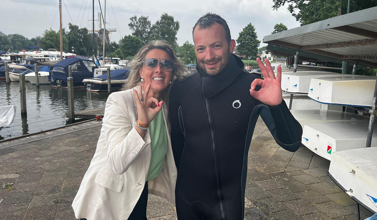 Vandaag belde Rachel, ze viel van haar boot en verloor haar zonnebril. Om 13:00 contact en om 14:00 stonden we al in de haven van Weesp. Haar stem kwam ons al bekend voor…. Rachel is de vrouw van Arthur die we vorige week hielpen met het opduiken van zijn iPhone 14. Natuurlijk zijn we nu in dezelfde haven.